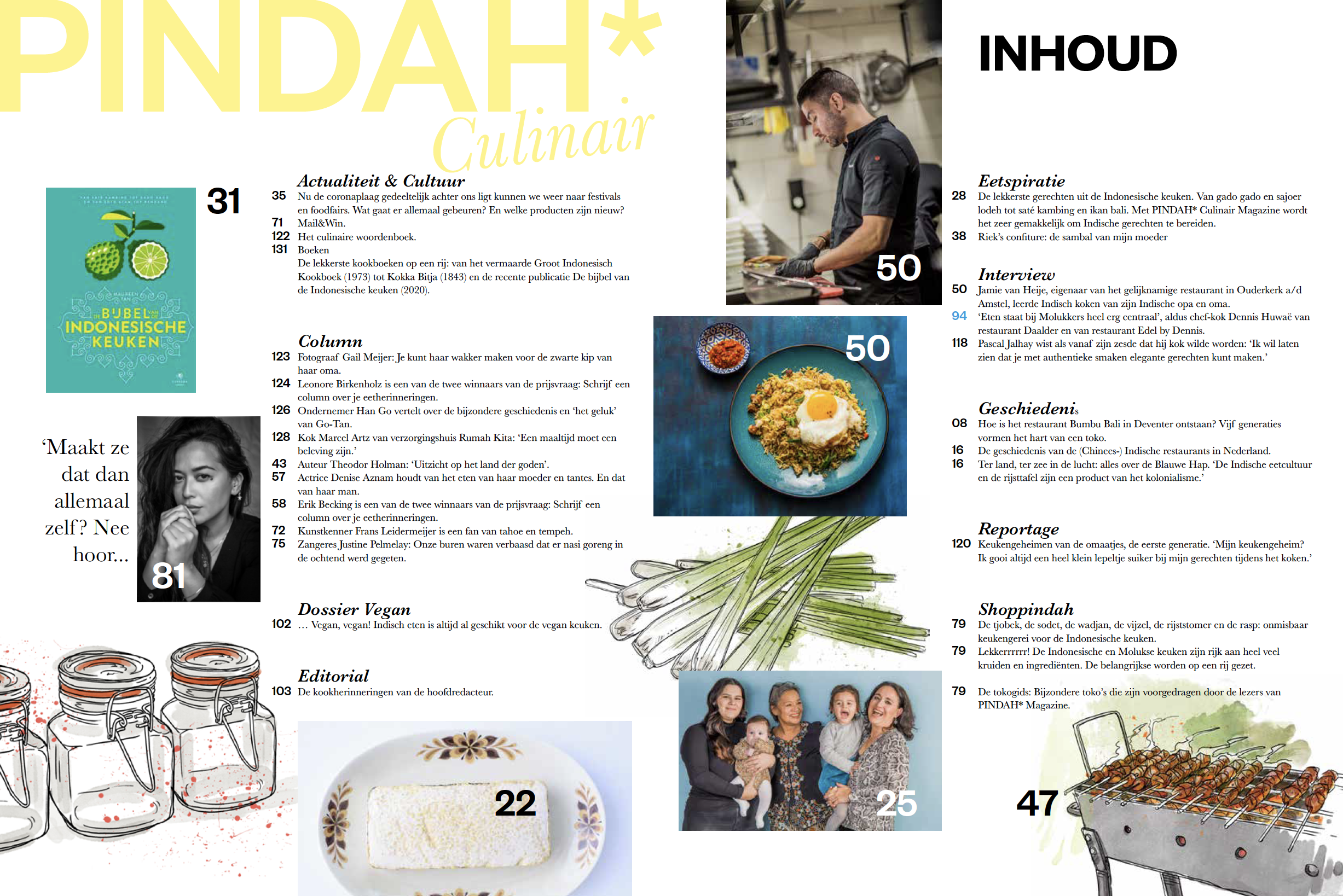 In de nieuwe culinaire versie van Pindah* Magazine hebben we ook een aantal rubrieken, zoals Lekkerrrrrrr!