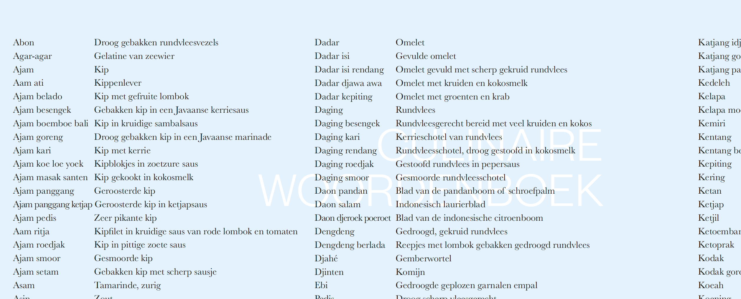 Toen we nadachten over deze culinaire versie van PINDAH* Magazine leek het ons leuk en onvermijdelijk om er ook een culinair woordenboek aan toe te voegen.