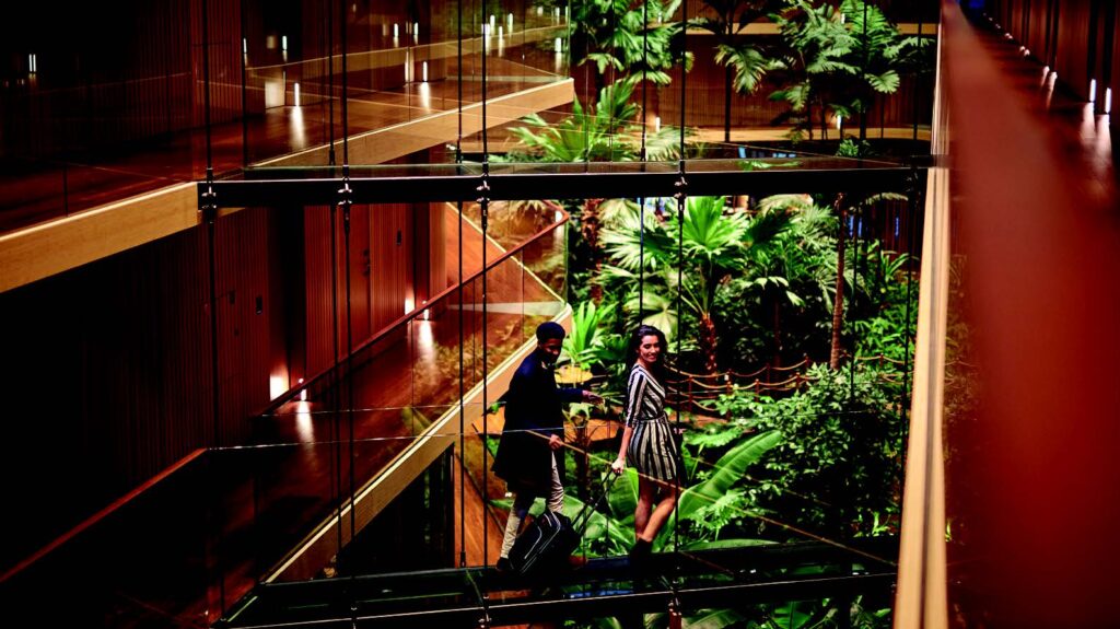 Je checkt in en wordt meteen geboeid door het prachtige zicht op de subtropische tuin, waarnaar je vertrekt op safari via onze jungle naar je luxueuze kamer. Het houten gebouw is niet alleen een lust voor het oog, de geur van bamboe werkt ook nog eens rustgevend. Perfect moment om je telefoon op flight mode te zetten.