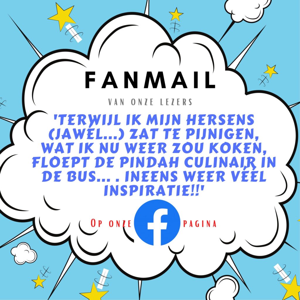 ‘Terwijl ik mijn hersens (jawél…) zat te pijnigen, wat ik nu weer zou koken, floept de Pindah Culinair in de bus… . Ineens weer véél inspiratie!!’